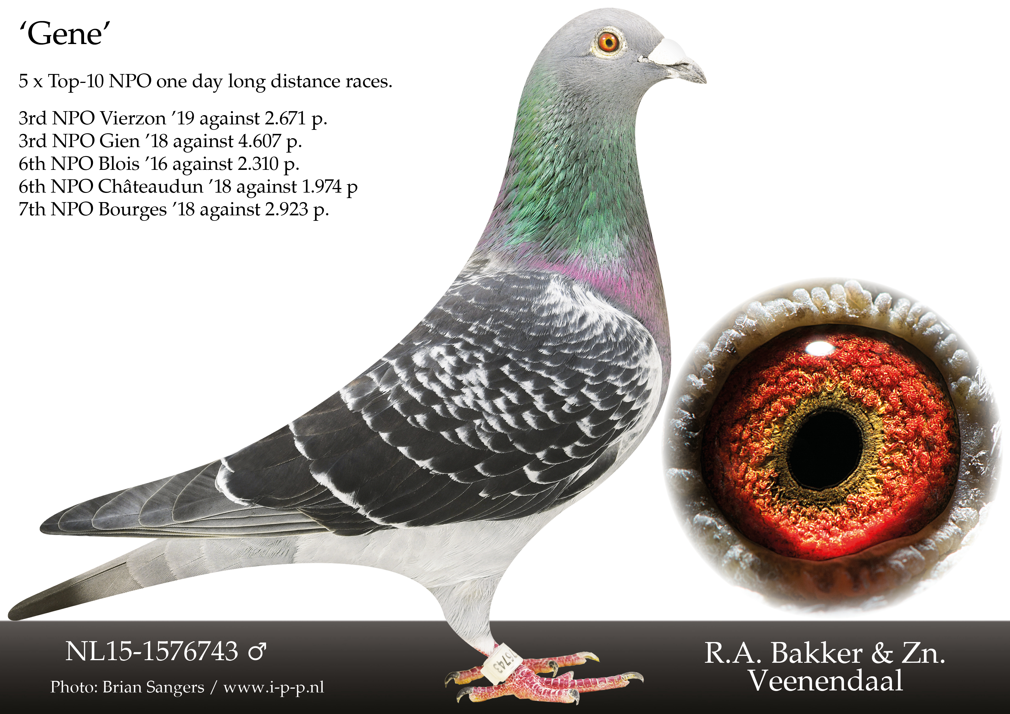 In deze collectie zitten onder andere ook directe kinderen van twee indrukwekkende top duiven van Bakker Pigeons. En dan bedoelen we “GERMINY” en “GENE” en twee uit dit groepje van 6 rechtstreekse duiven van Ruud Bakker komen direct uit deze toppers.