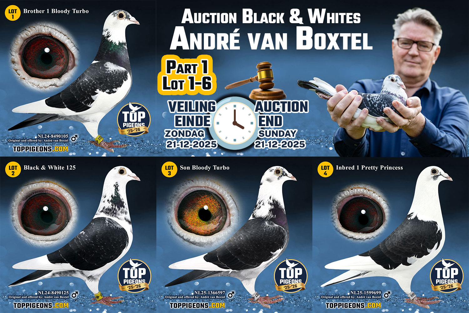 Mainly from my "Black & Whites," and these are divided into four auctions of 6 pigeons each. They are all pigeons bred from my foundation breeders.