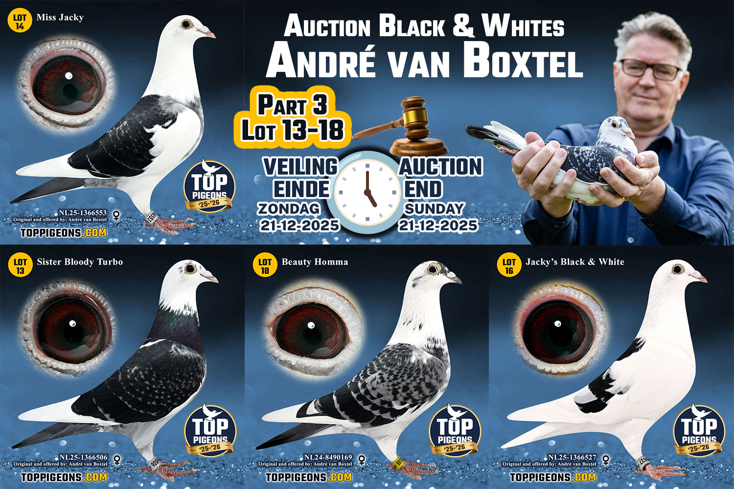 Mainly from my "Black & Whites," and these are divided into four auctions of 6 pigeons each. They are all pigeons bred from my foundation breeders.