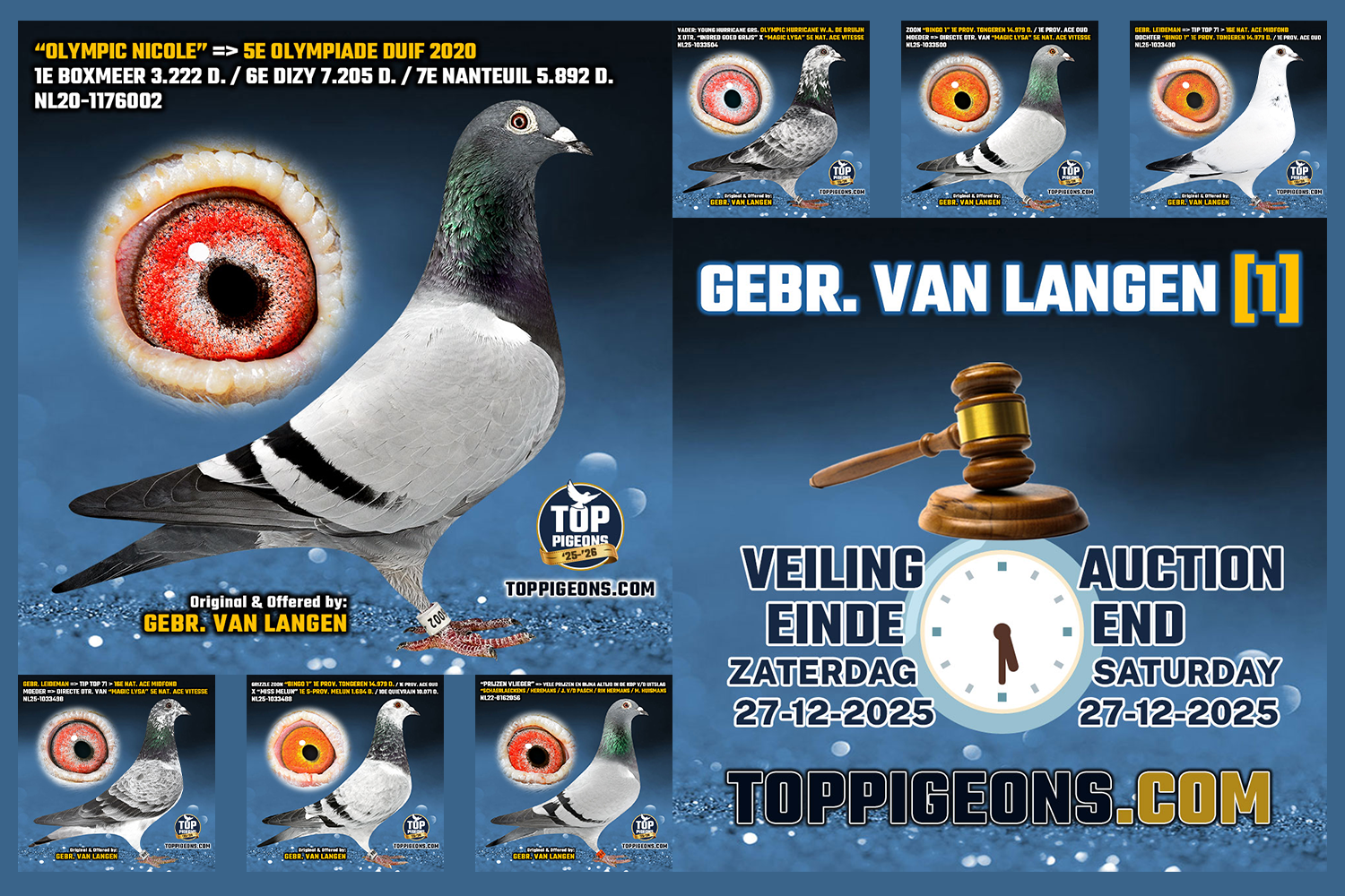 De geslachten van de jonge duiven zijn zo goed mogelijk ingeschat door de Gebr. Van Langen echter 100% zekerheid kan niet worden gegarandeerd.