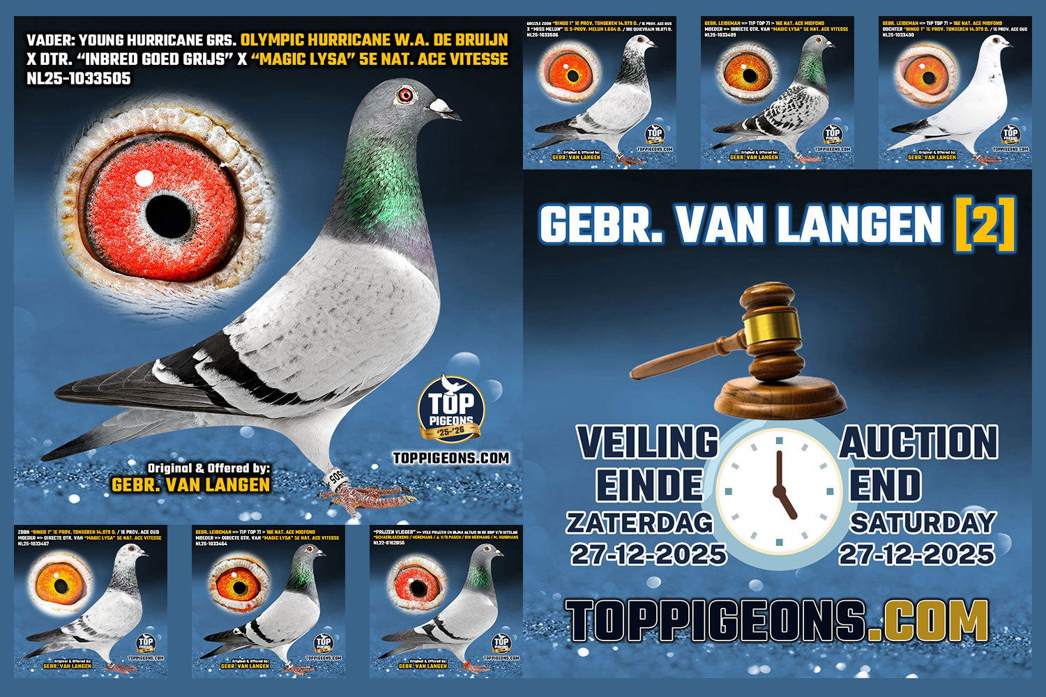 De geslachten van de jonge duiven zijn zo goed mogelijk ingeschat door de Gebr. Van Langen echter 100% zekerheid kan niet worden gegarandeerd.