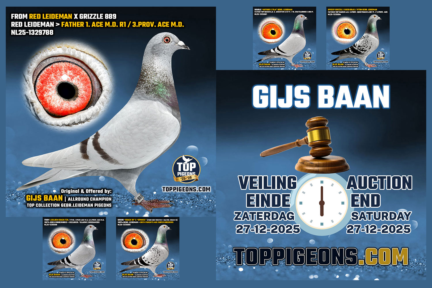 In deze veiling ziet u 5 prachtige jonge duiven uit top materiaal van Gijs. Natuurlijk ziet u nazaten van zijn rechtstreekse Gebr. Leideman duiven en uit bewezen vliegduiven. Top aanbod uit top vlieg- en kweekduiven. Doe er uw voordeel mee en probeer een duifje aan te schaffen uit deze veiling.