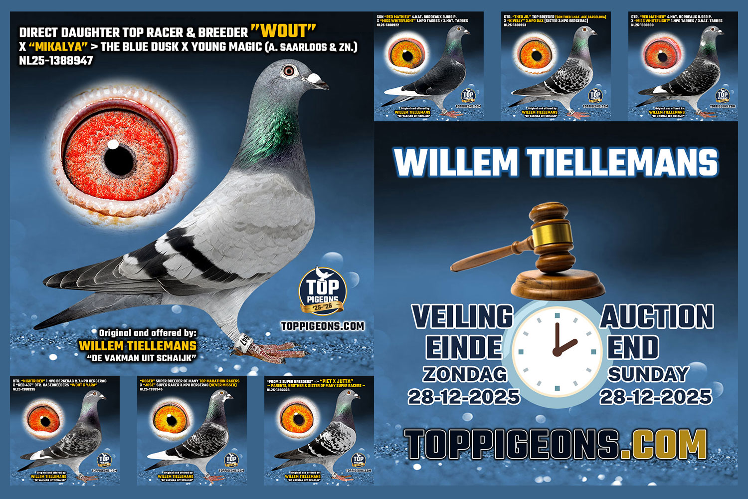 Willem is iemand die houdt van eerlijkheid en staat positief in het leven. En daarvan hebben we er in de duivensport nooit genoeg. In deze veiling ziet u 8 bijzondere duiven die stuk voor stuk afstammen van top materiaal. De ouders zijn dan ook waar mogelijk afgebeeld bij de verkoopduiven. Bekijk en lees alles op uw gemak.