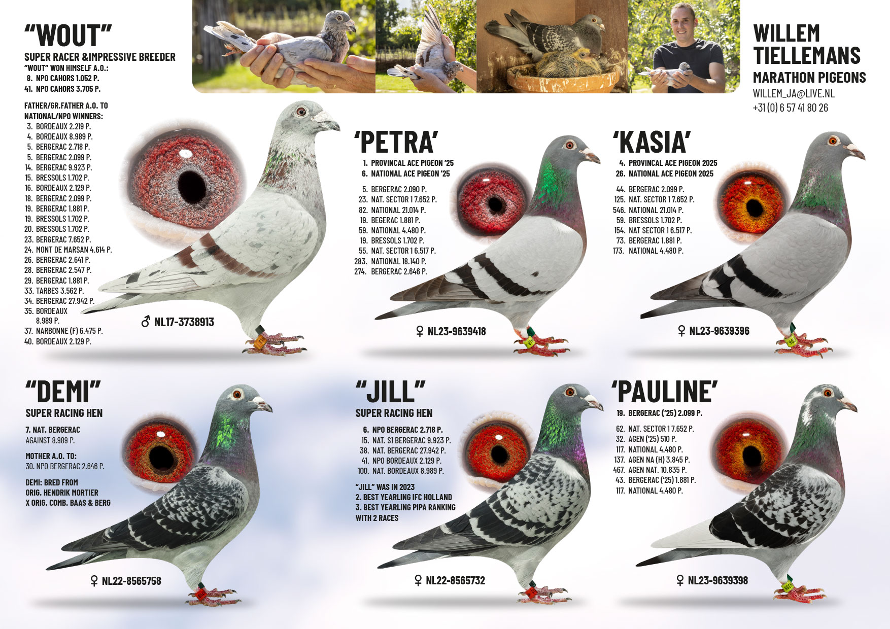 Als u verder wilt komen op de marathon en u houdt van pure kwaliteit op basis van selectie op de marathon in de ruimste zin van het woord… dan zijn de duiven van Willem Tiellemans een welkome aanvulling op uw kweekhok.