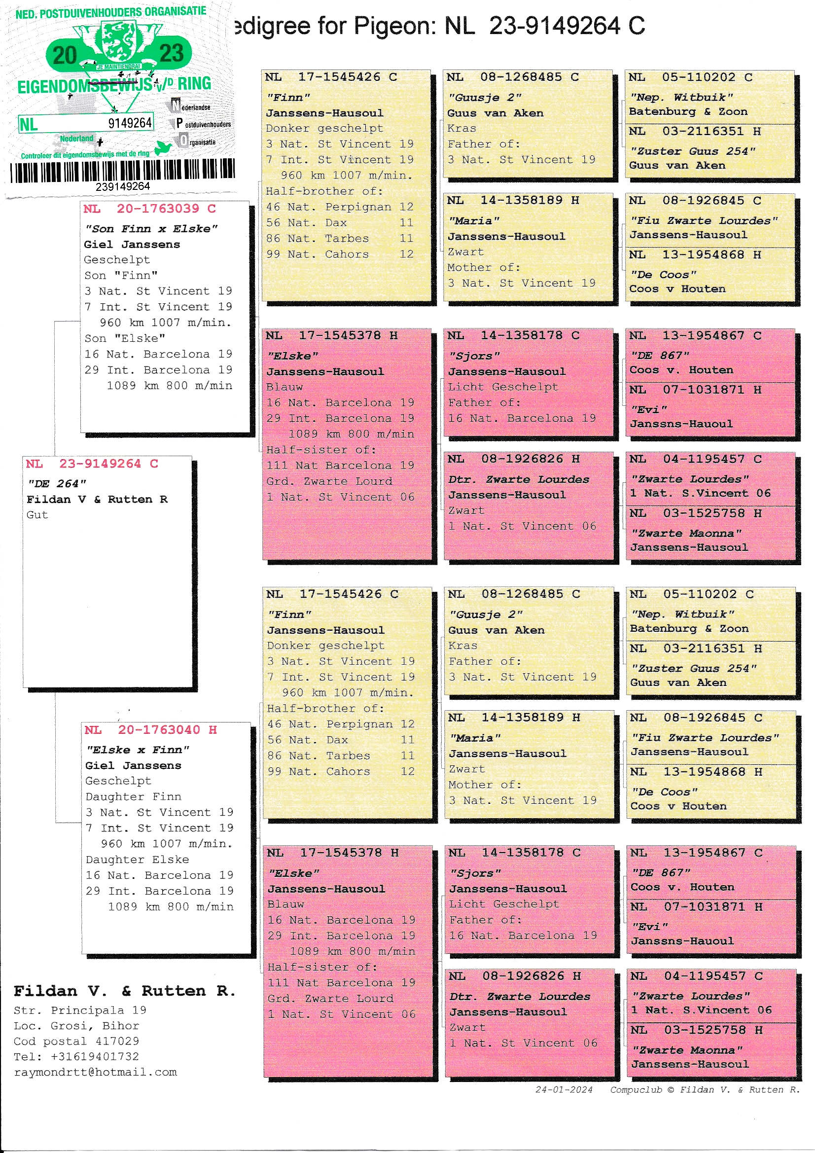 Sale part 2 Breeding pigeons from Harrie de Haan