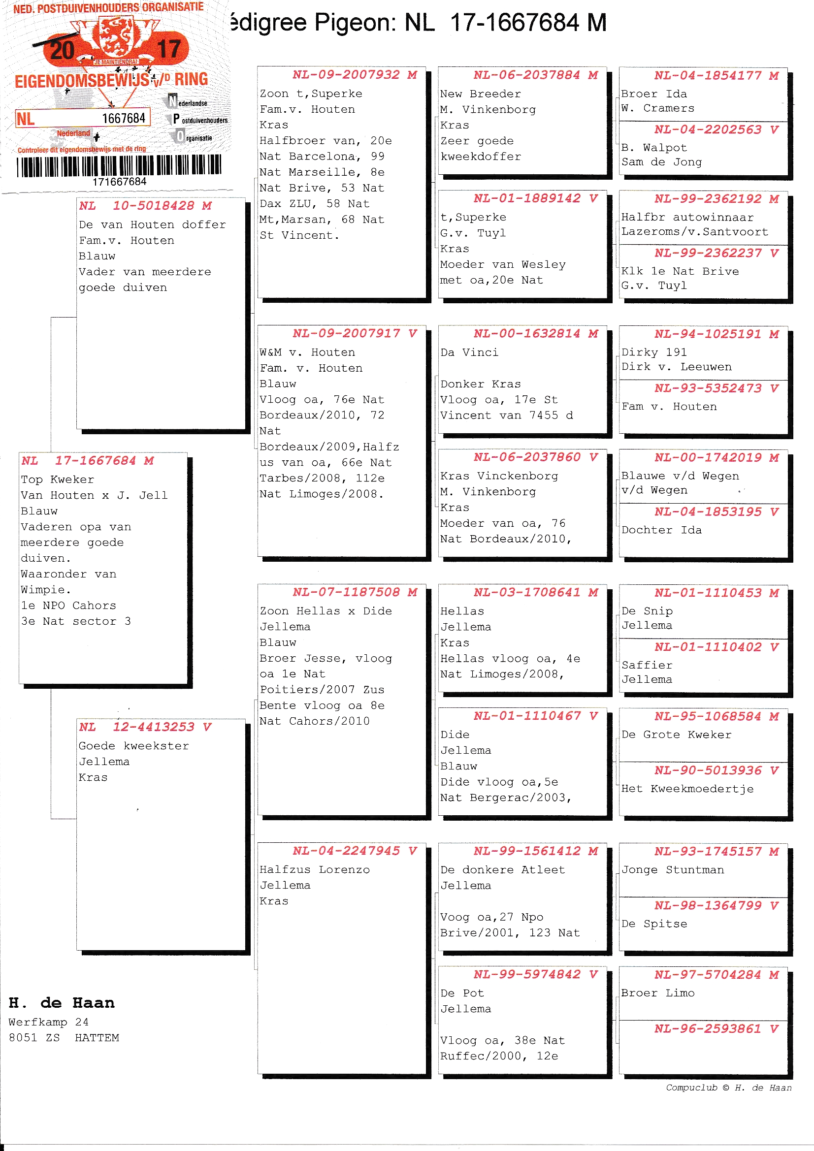 Sale part 2 Breeding pigeons from Harrie de Haan