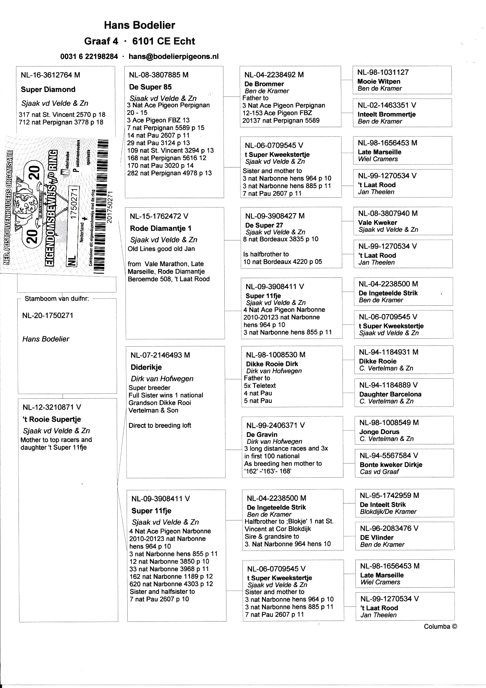 Pedigree ORIGINAL HANS BODELIER