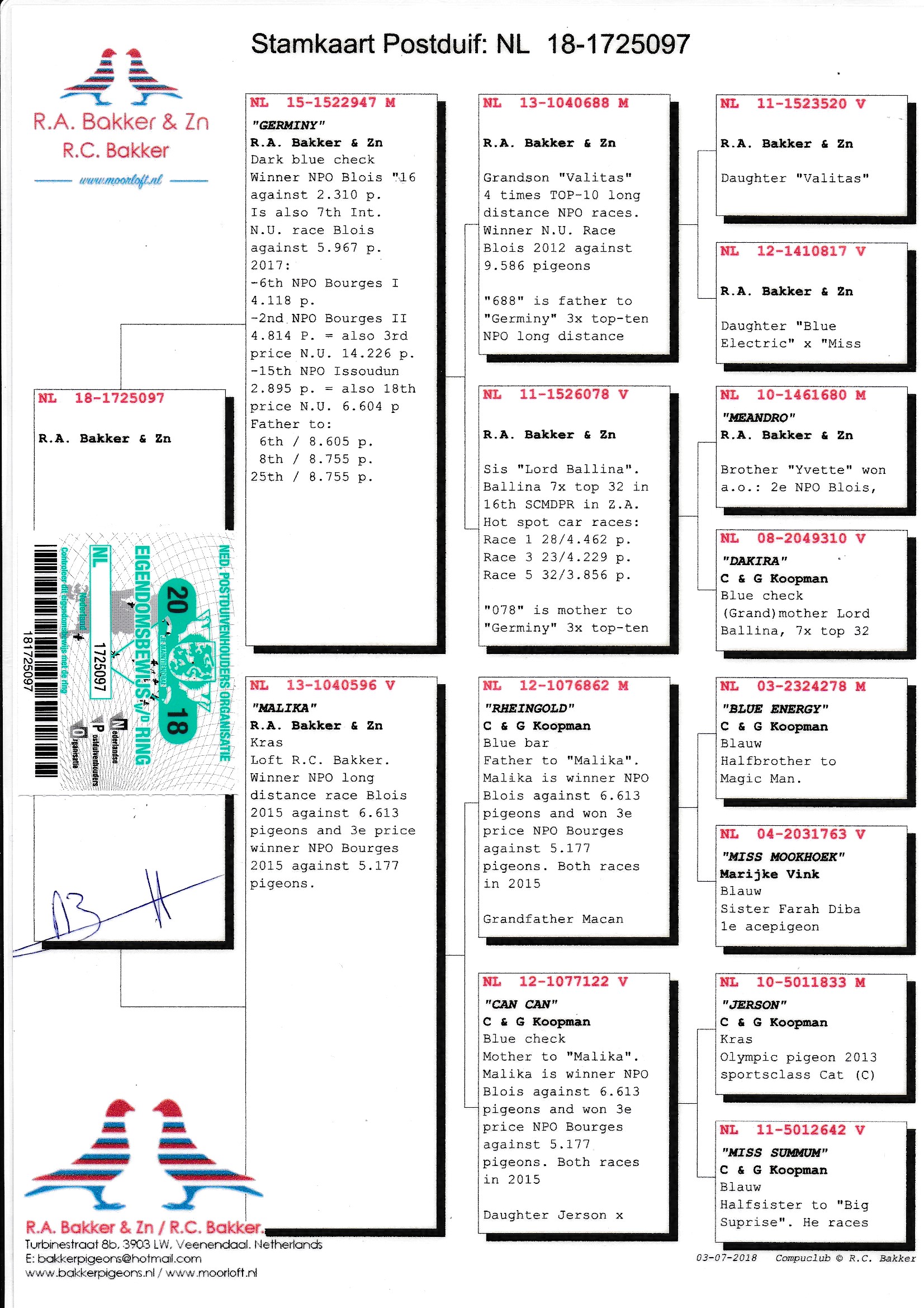 ♂ NL18-1725097 => ORIGINAL: BAKKER PIGEONS