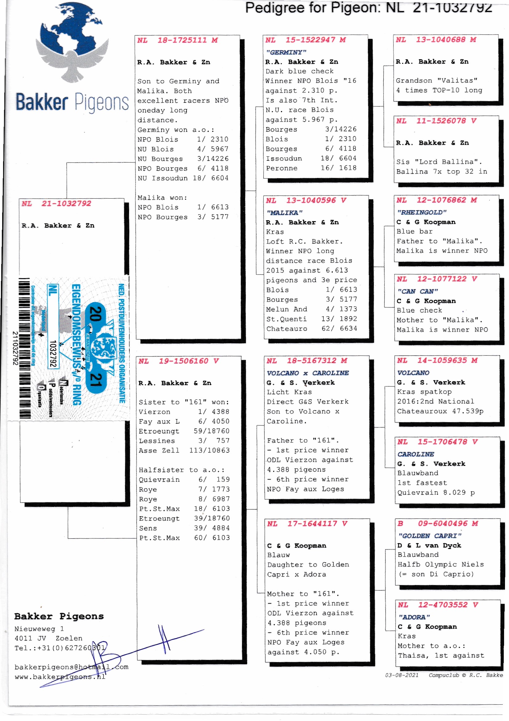 ♀ NL21-1032792 => ORIGINAL: BAKKER PIGEONS