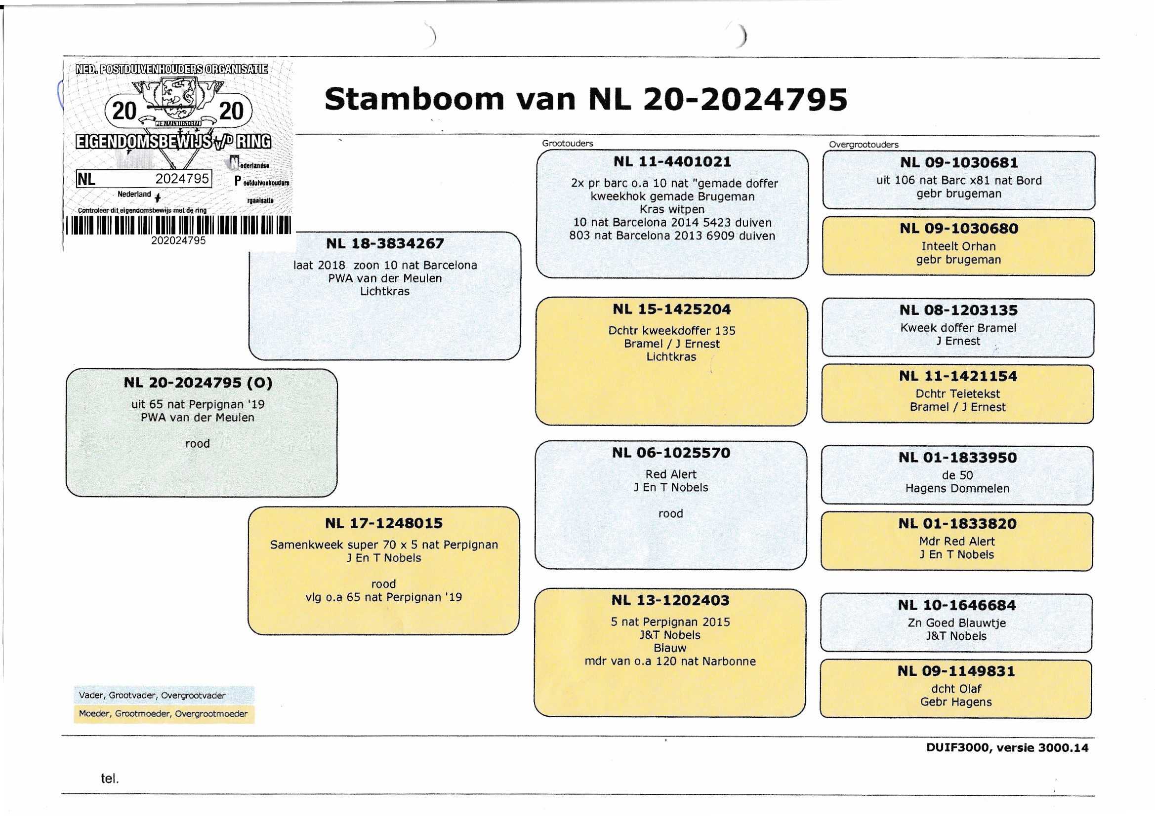 Pedigree PWA v/d Meulen, "Son 65. Nat. Perpignan"
