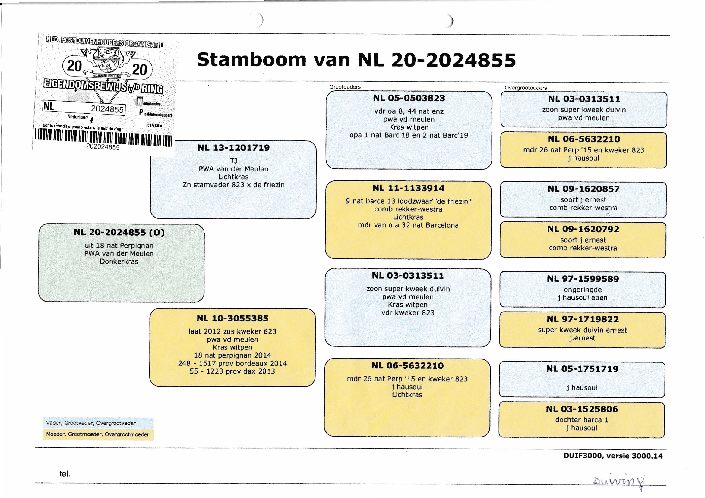 Pedigree PWA v/d Meulen, "Son 823 x Friezin"