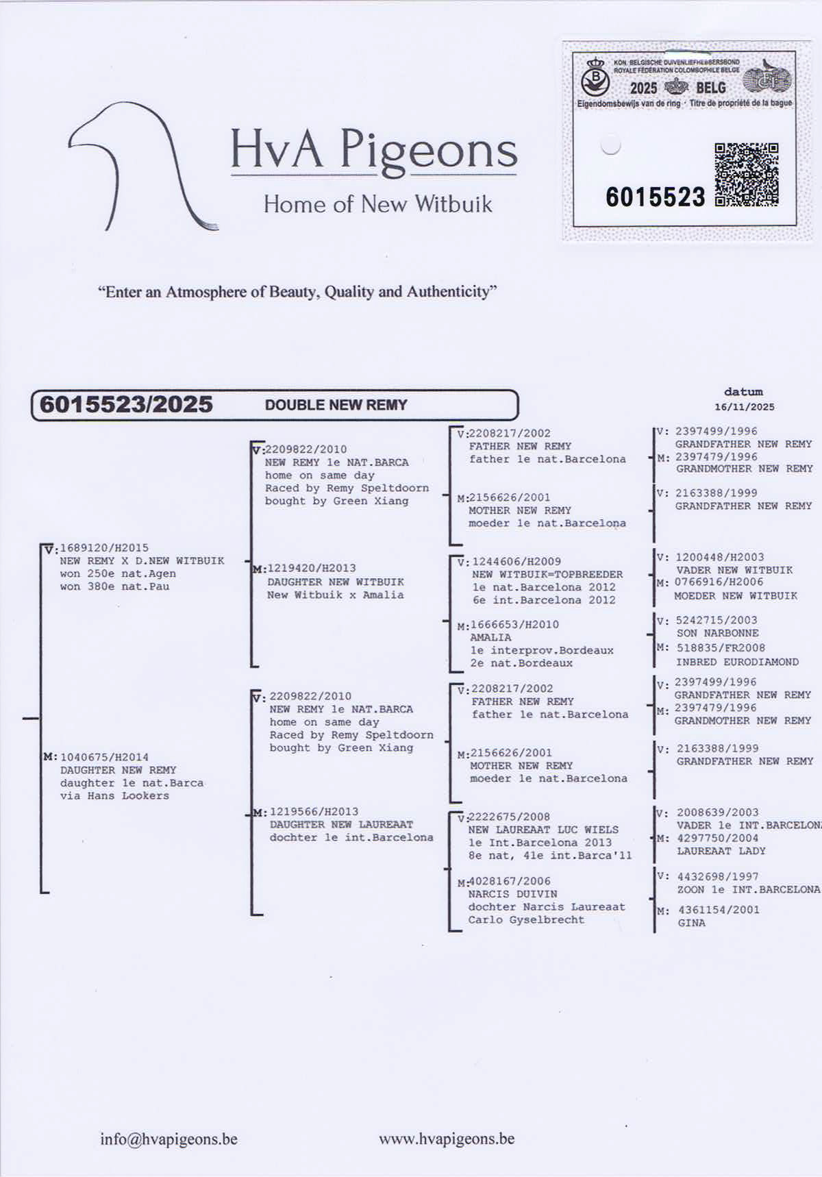 Father from New Remy, 1e nat.Barcelona 2014 x Daughter New Witbuik