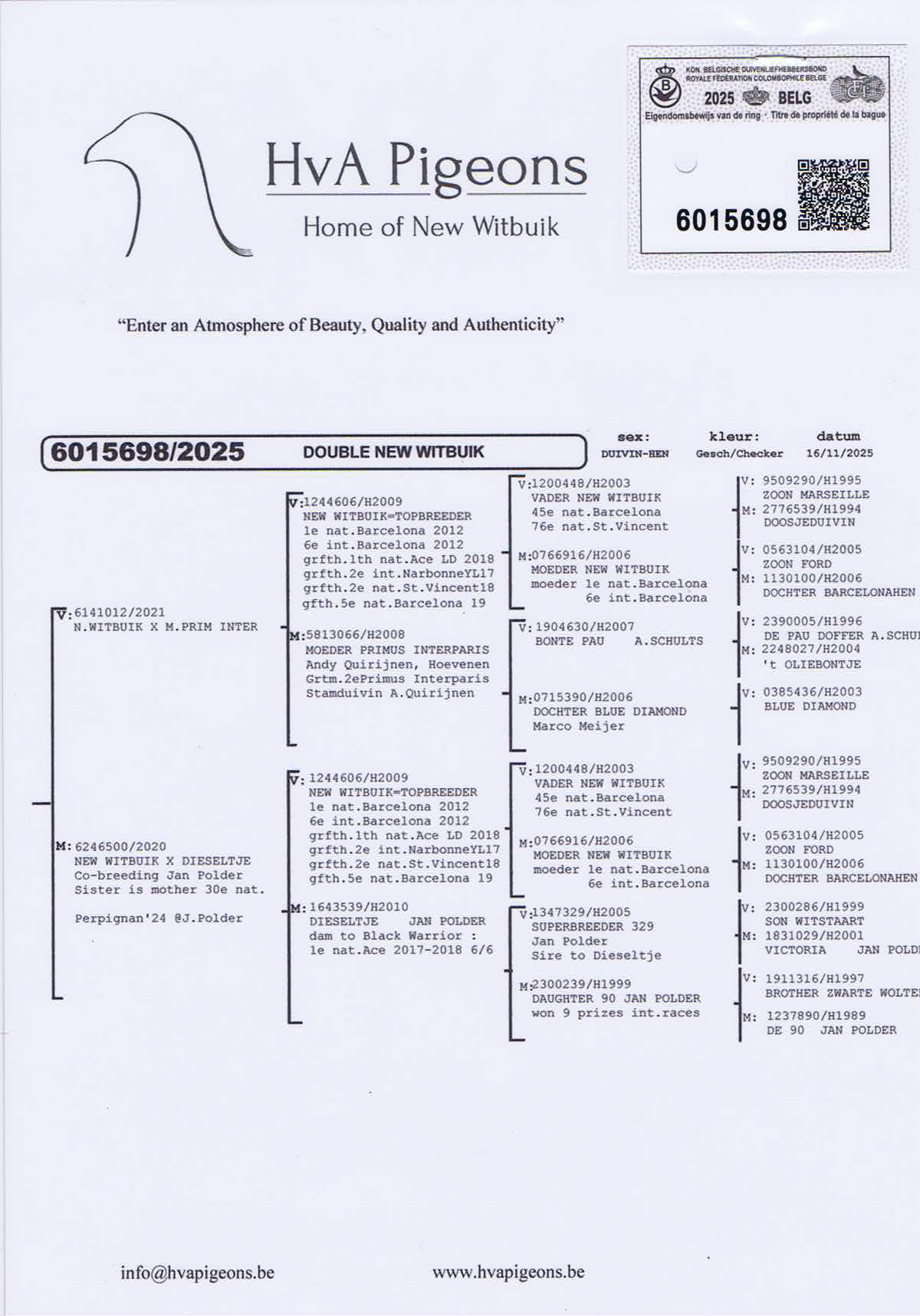 Father from New Witbuik x 066 mother Primus Interparis Barcelona @ Andy Quirijnen (Hoevenen)