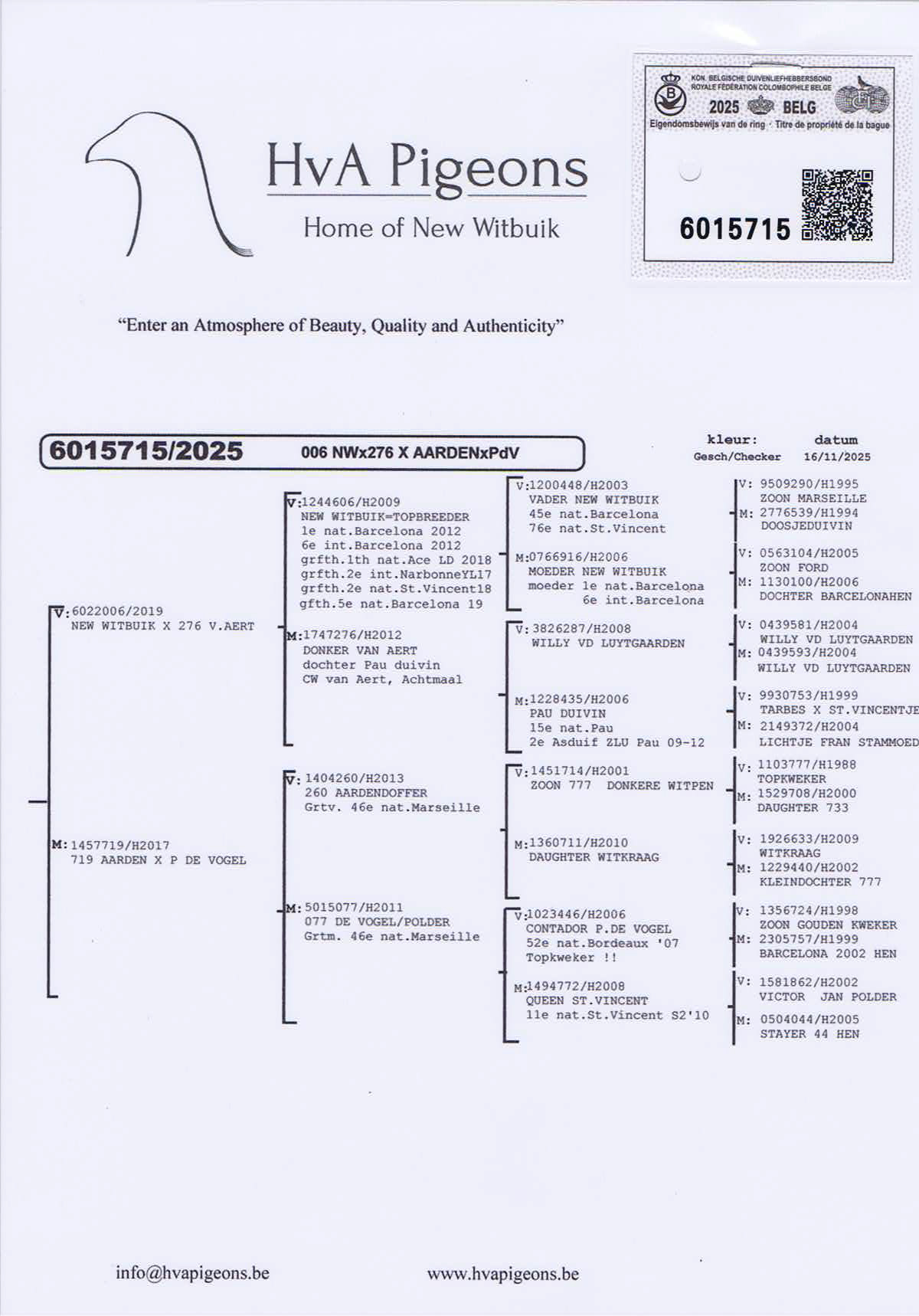 Father from “New Witbuik x 276 van Aert-duivin”