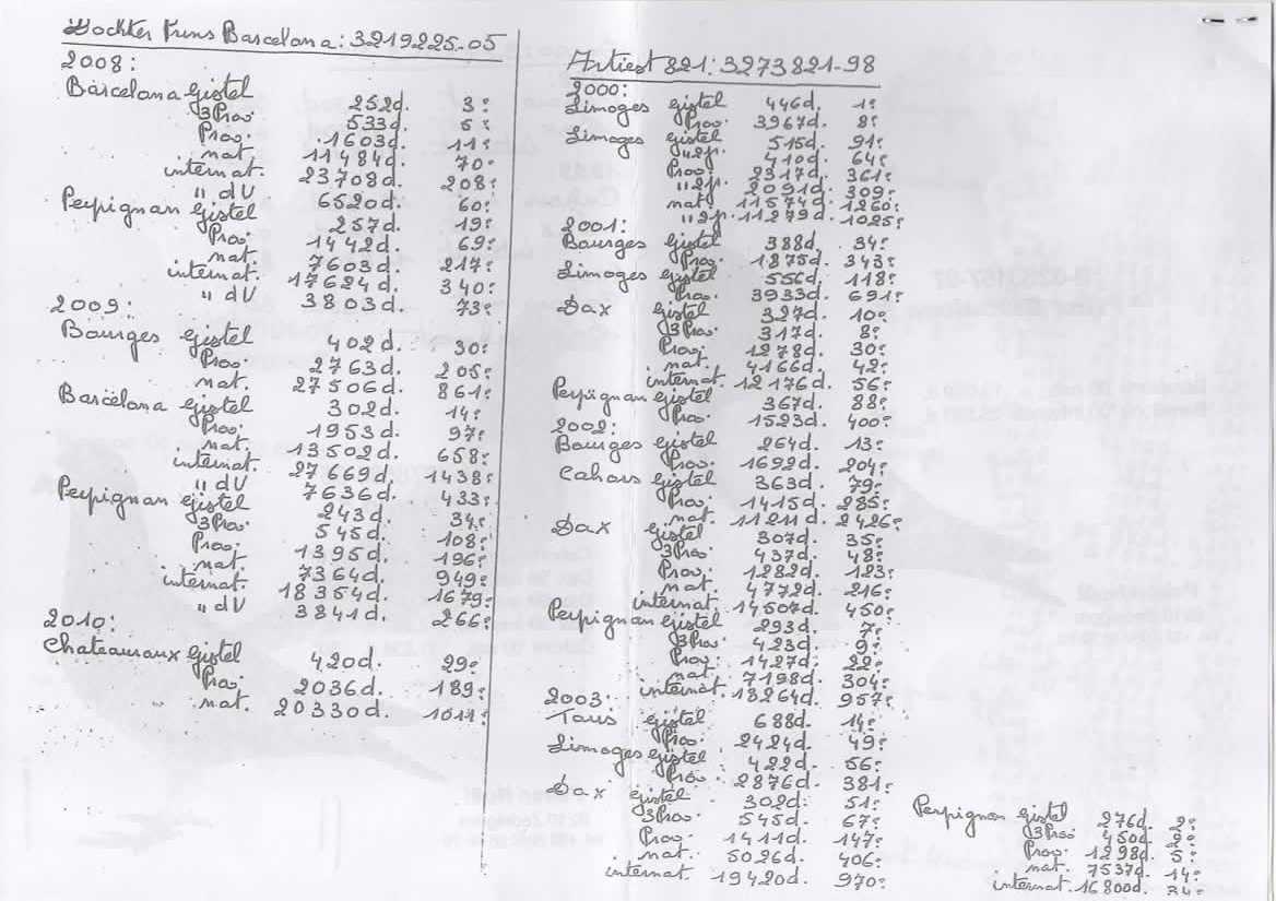PRINS BARCELONA vloog op Barcelona 1e Gistel on 372 p. 7e NAT. on 13.659 p. en 15e INT. op 26.597 duiven. Zijn dochter BEL05-3219225 vloog op Barcelona: 3e Gistel 252 duiven, 11e Prov. 1603 duiven, 70e NAT. 11.484 duiven, 208e INT. 23.708 duiven en 60e INT. d.v. 6.520 duiven.