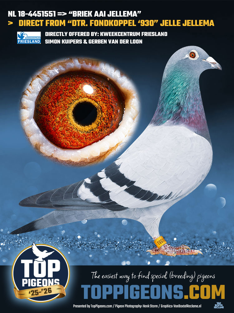 NL18-4451551 blauwband witpen perfecte duivin in de hand en KOMT UIT HET BESTE VAN JELLE JELLEMA KEER ONZE SUCCESVOLLE 1e Nat. Cahors LIJN. Laatste jong uit onze Jellema stamduivin dochter FONDKOPPEL 06-930.