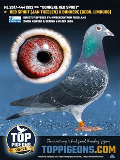 NL17- 4441992 Zwart duivin is halfzus 1e asduif overnacht sector 4 en de `Rode Fondman` (09-1645614) die 12 keer prijs won op de marathon. RED SPIRIT is een 100% Theelen. De moeder is een rechtstreekse gebr. Limburg uit de RODE MARATHON x SUPER van GEEL.