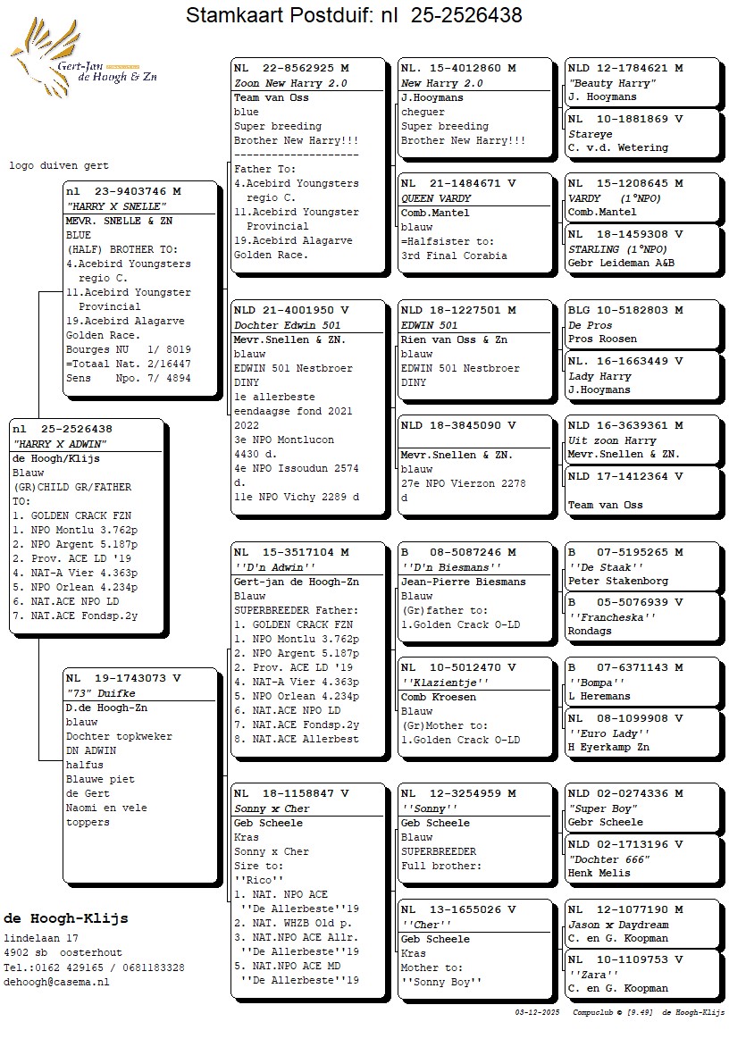 Pedigree De Hoogh-Klijs, "Superbreeding "The Harry"