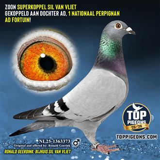 Koop 16 NL25-1363373 blauw doffer. Zoon superkoppel Sil van Vliet gekoppeld aan dochter Ad, 1 Nationaal Perpignan Ad Fortuin!