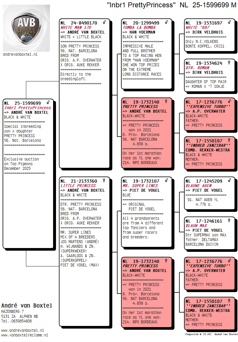 Pedigree André van Boxtel, "Inbred 1 Pretty Princess"