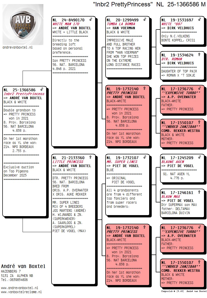 Pedigree André van Boxtel, "Inbred 2 Pretty Princess"
