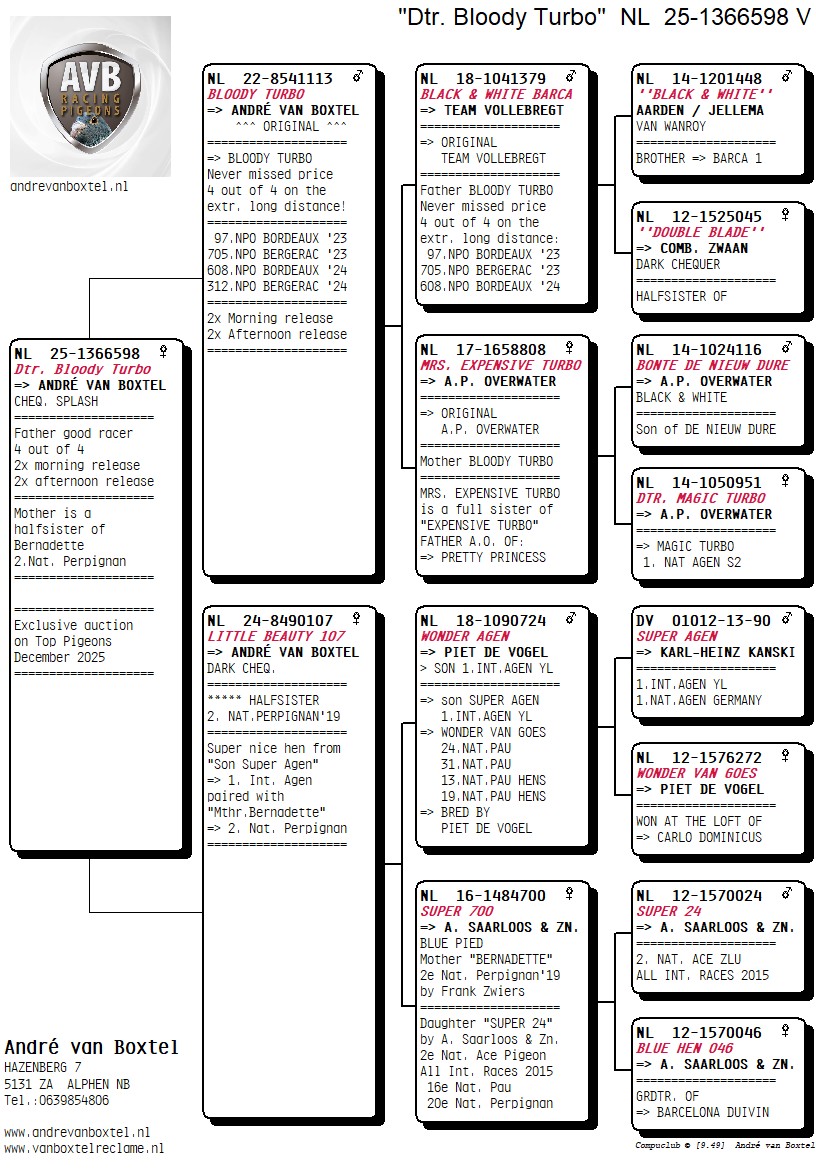 Pedigree André van Boxtel, "Daughter Bloody Turbo"