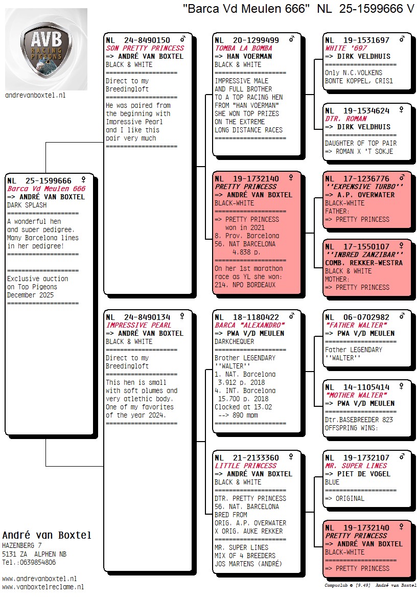 Pedigree André van Boxtel, "Barca van der Meulen 666"