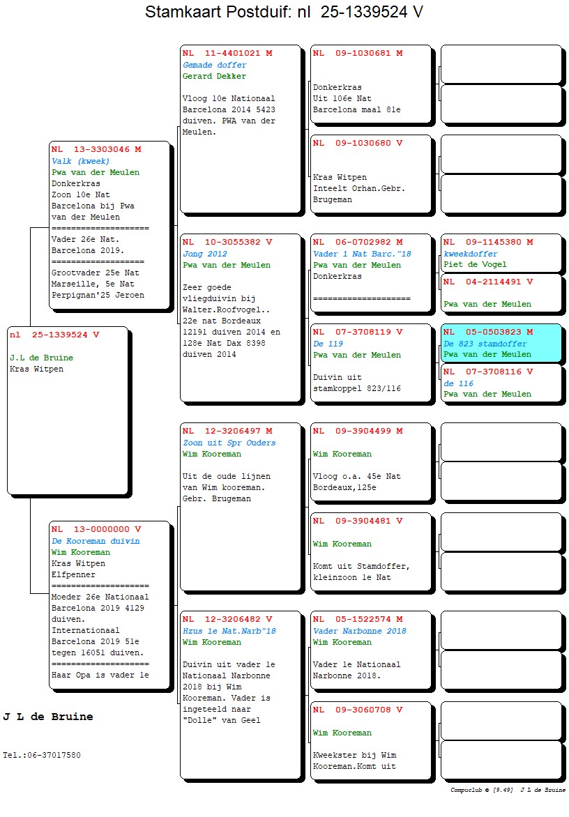 PWA v/d Meulen x De Kooreman duivin grdtr. 1. Nat. Narbonne