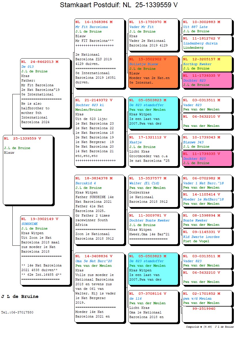 Pedigree Jacky de Bruine, "Direct Daughter Sunshine"