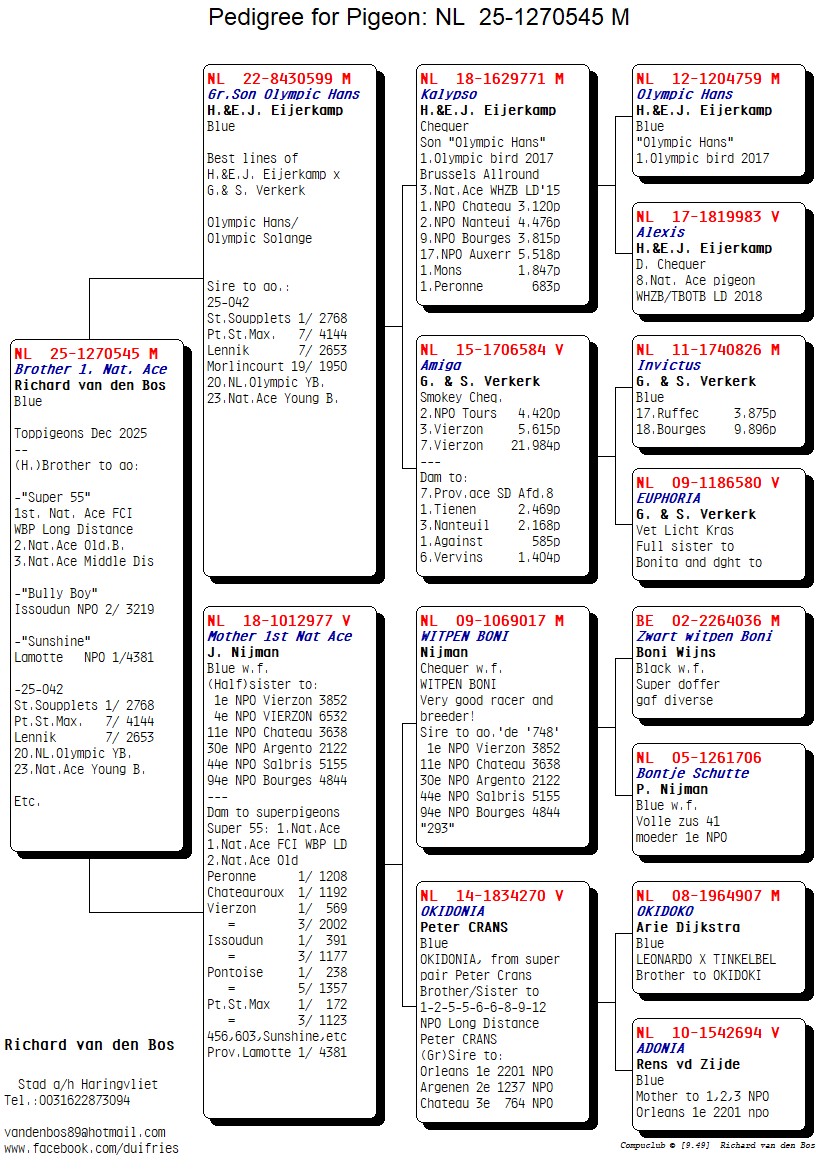 “HALFBROTHER SUPER 55” 1.NAT. ACE FCI WORLD BEST PIGEON L.D.