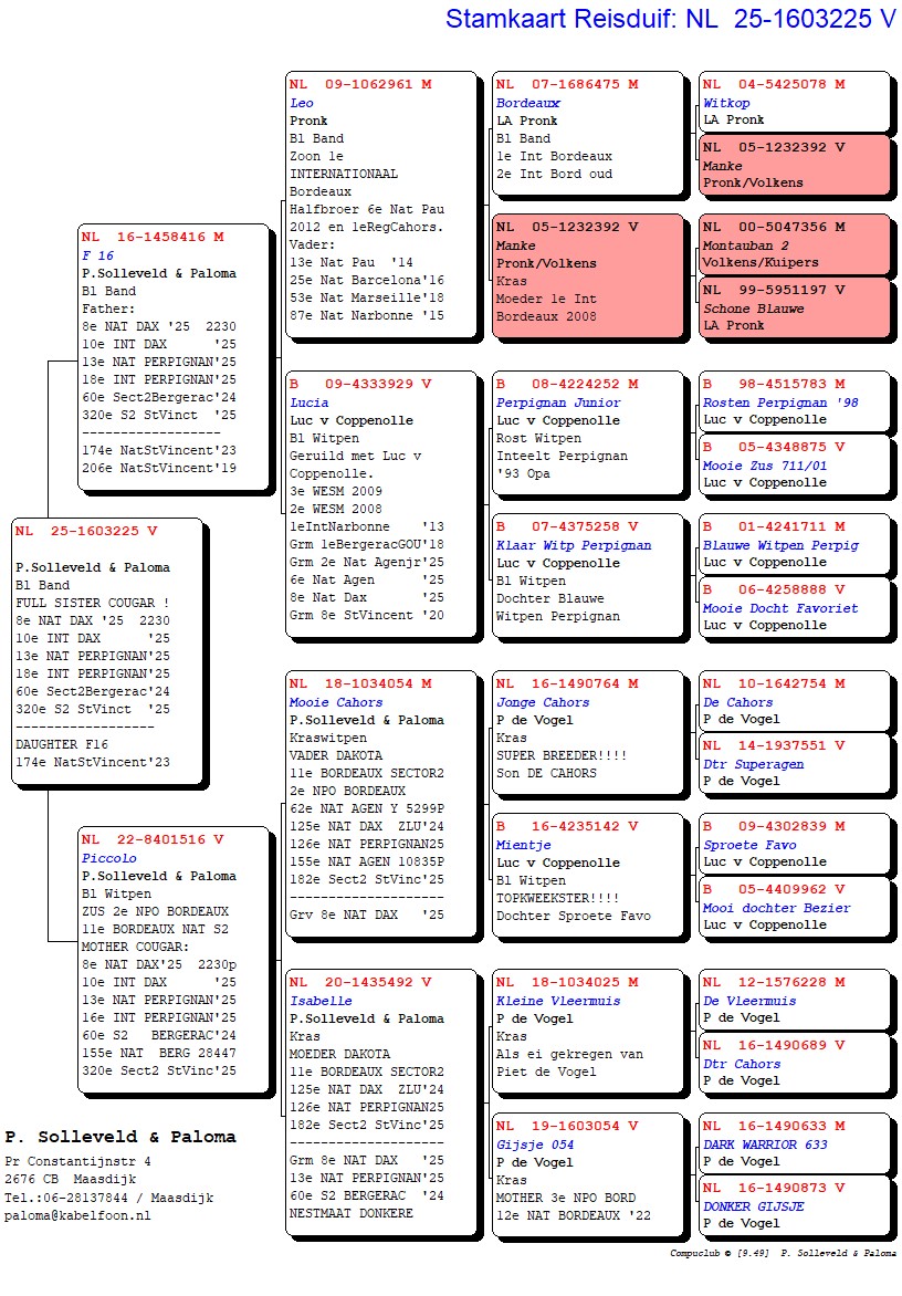 Pedigree Peet Solleveld, "Sister 8e Nat. Dax"