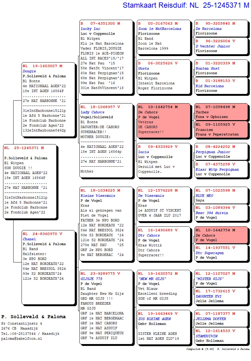 Zijn  legendarische  Cahors gekoppeld aan onze topduivin Lucia.