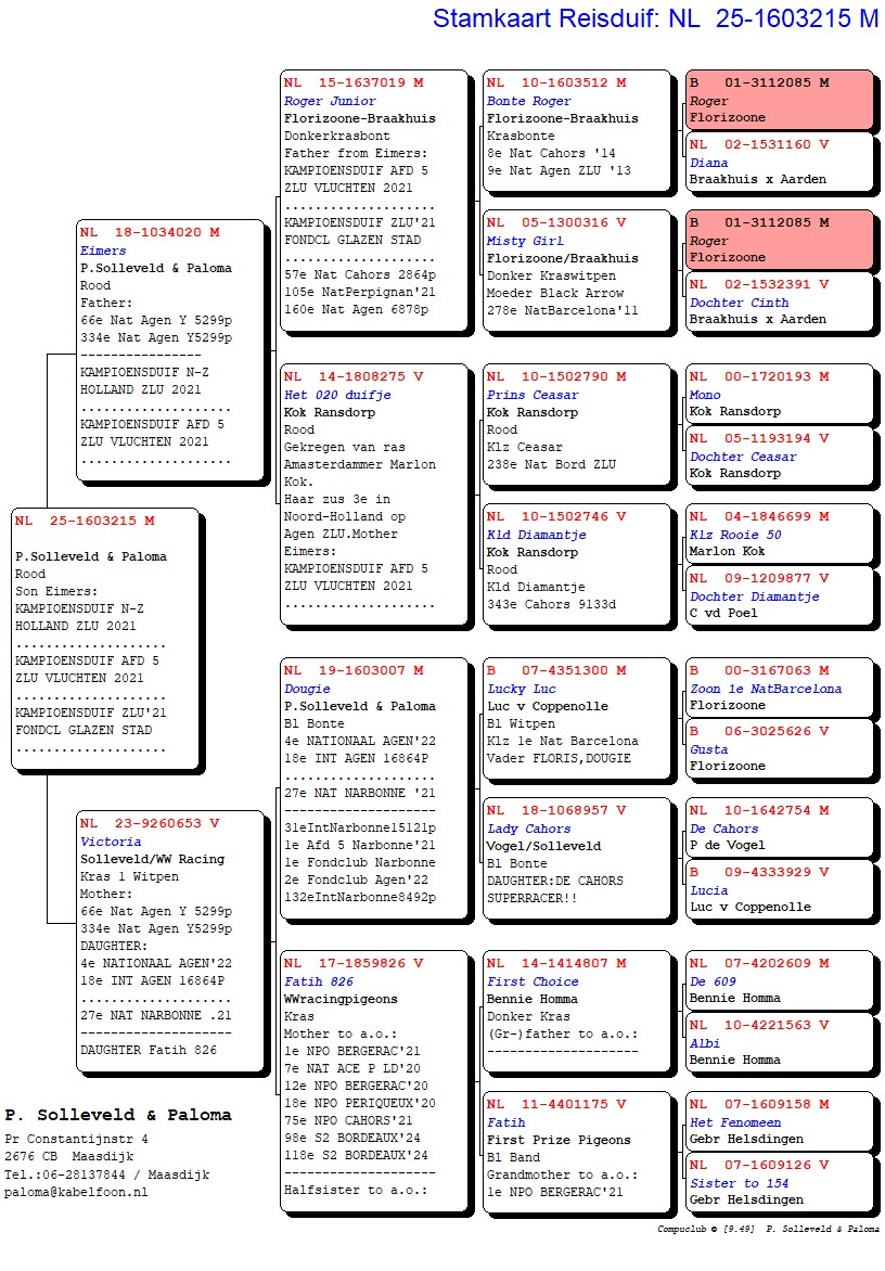 Zijn legendarische Cahors gekoppeld aan onze topduivin Lucia.