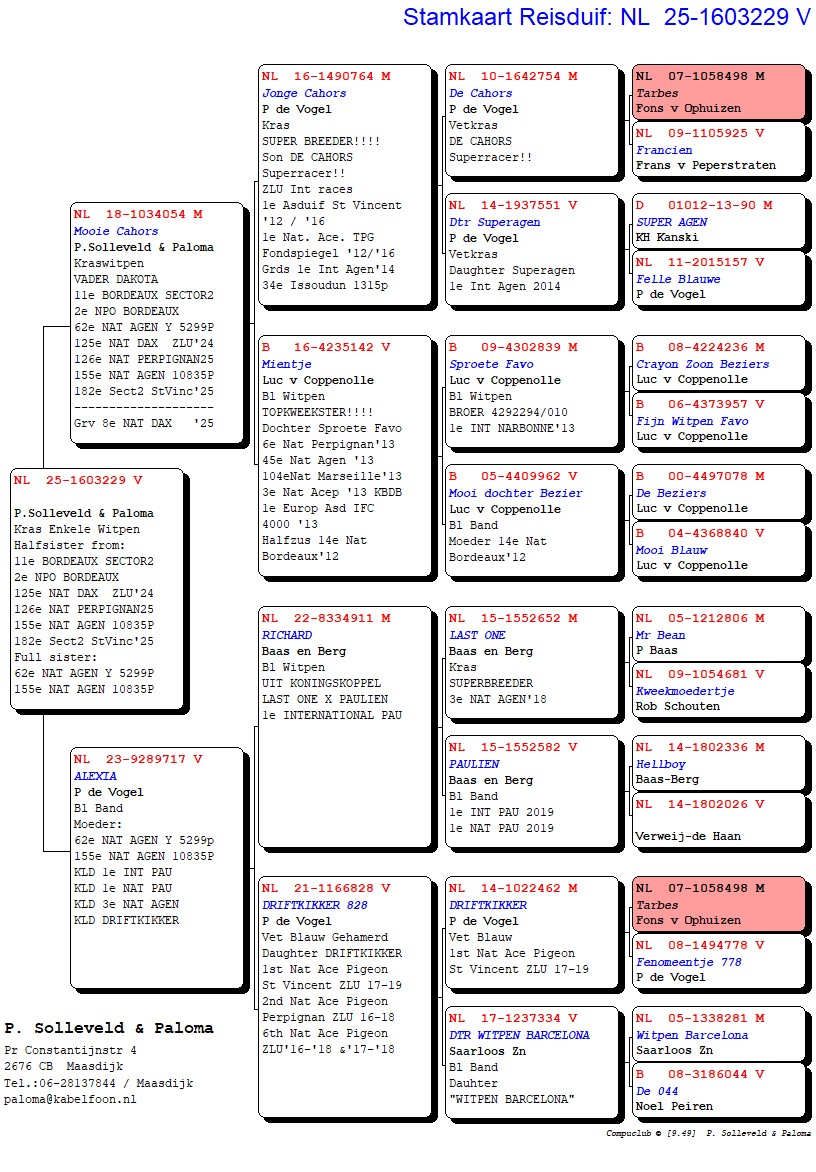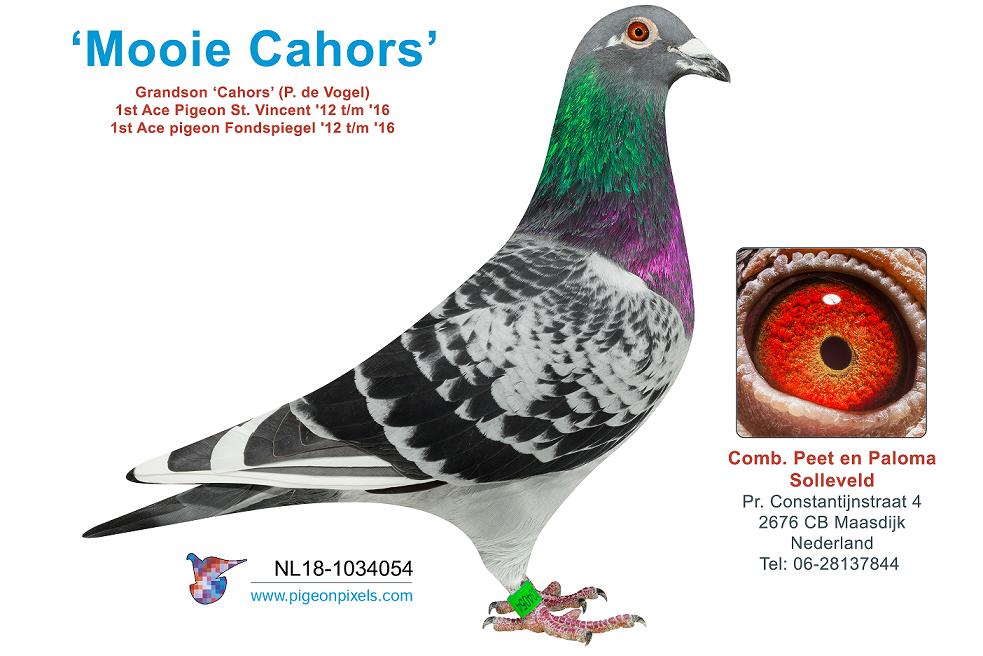 Zus Mooie Cahors en Erdinger Cahors is een topkweekster bij Paul & Sven Saeytijdt te België. O.a moeder 32e,92e,99e,144e en 189e Nationaal.