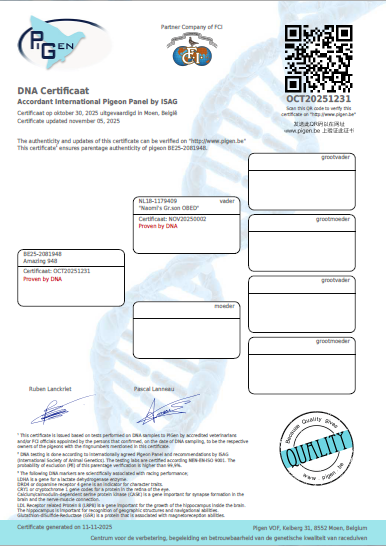 Daughter King Geert 6e Nat. Ace KBDB Extreme Long distance 2024