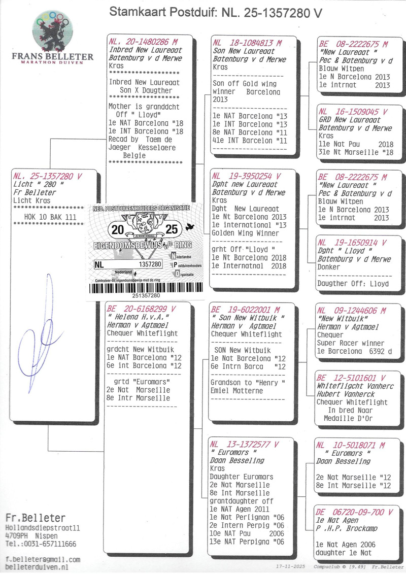 Batenburg-vd Merwe x HvA Pigeons Home of New Witbuik