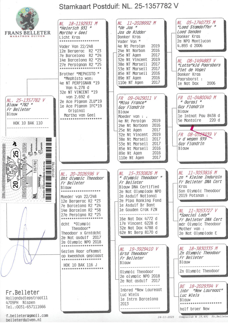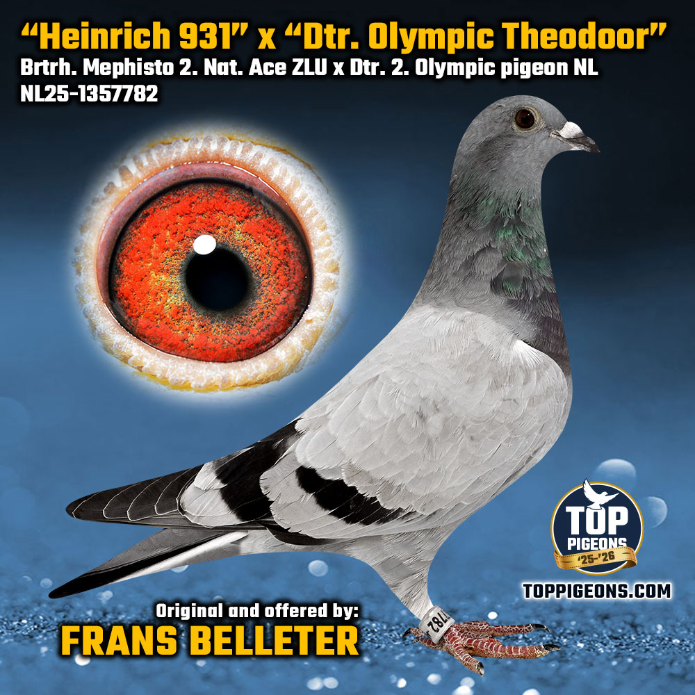 Brtrh. Mephisto 2. Nat. Ace ZLU x Dtr. 2. Olympic pigeon NL