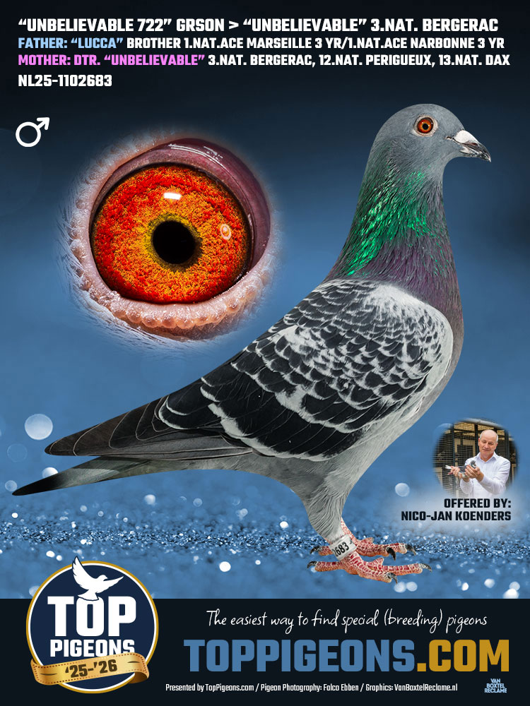 FATHER: “LUCCA” BROTHER 1.NAT.ACE MARSEILLE 3 YR/1.NAT.ACE NARBONNE 3 YR MOTHER: DTR. “UNBELIEVABLE” 3.NAT. BERGERAC, 12.NAT. PERIGUEUX, 13.NAT. DAX