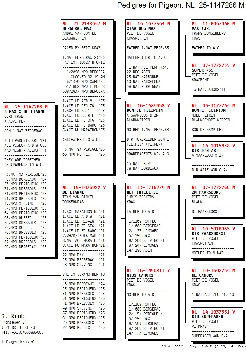 Both parents are 1.Ace Pigeons S-Prov. and “nightracers”