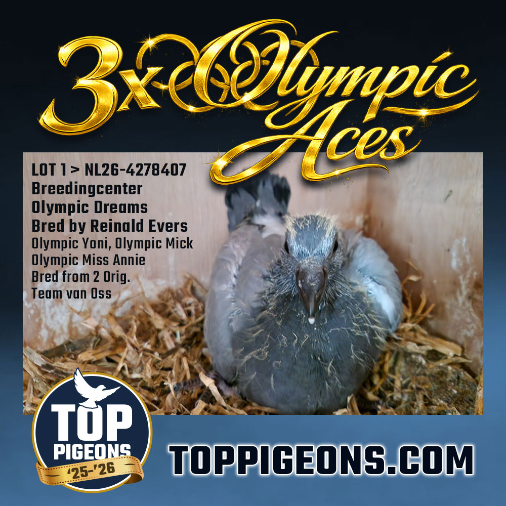 Your current position Home > Auctions > Young pigeons from the nest ► 3x OLYMPIC ACES > 1 - NL26-4278407 - OLYMPIC DREAMS 1