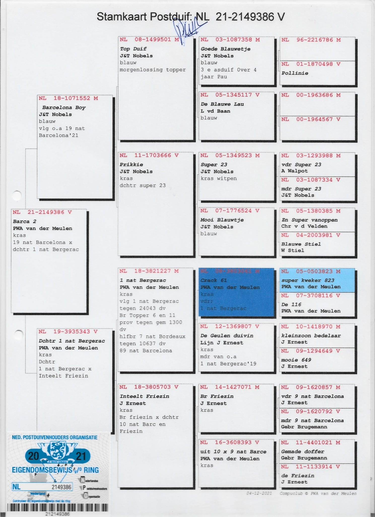 Pedigree PWA vd Meulen, "Daughter Barcelona Boy"