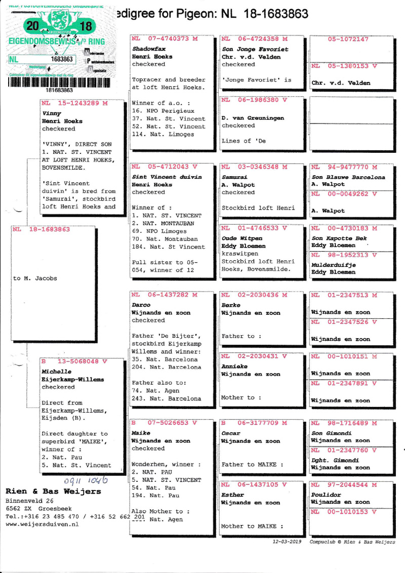 From Original Henri Hoeks (Shadowfax X Sint Vincent duivin)