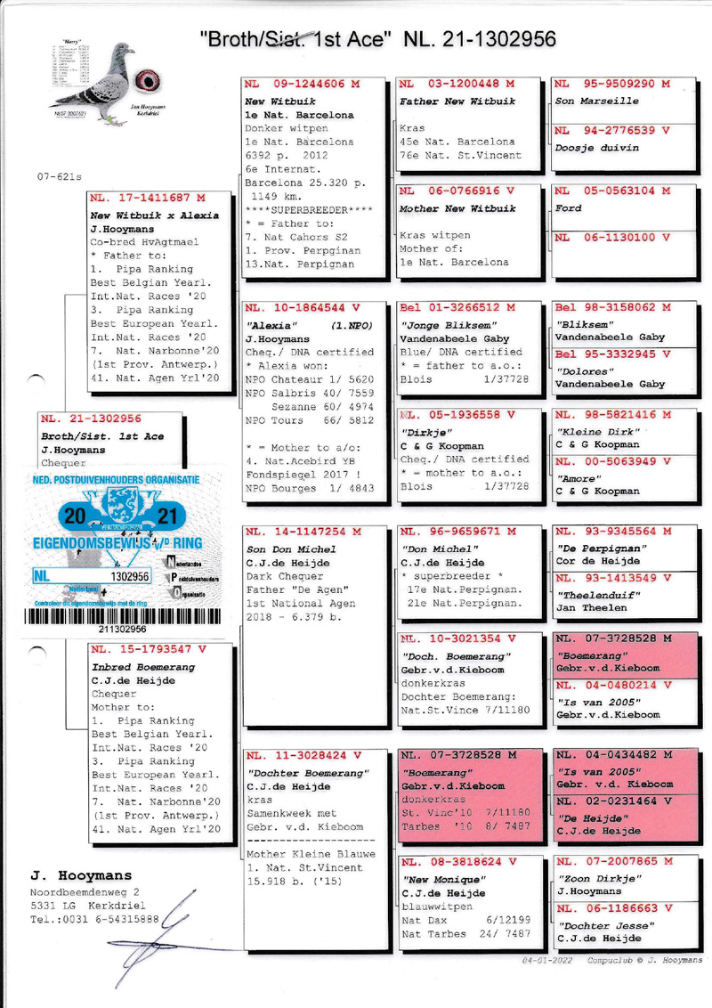 Pedigree Brother 1. Nat. Ace => Orig. Jan Hooymans
