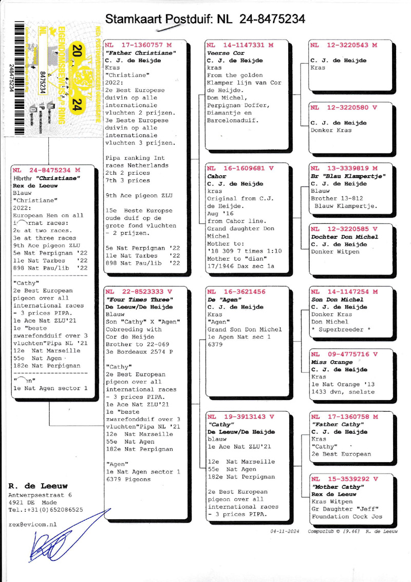 Pedigree Halfbr. Christiane x dtr. Cathy Orig. Rex de Leeuw