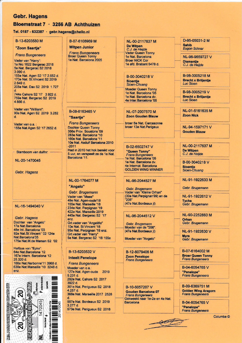 Pedigree Son Saartje x dtr. Angelo Orig. Gebr. Hagens
