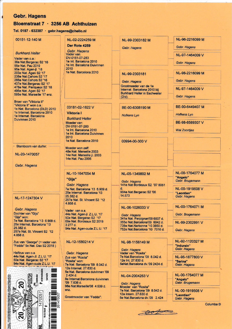 Pedigree Br. 1.Int. Barcelona x dtr. Gijs 25.Int. Barcelona