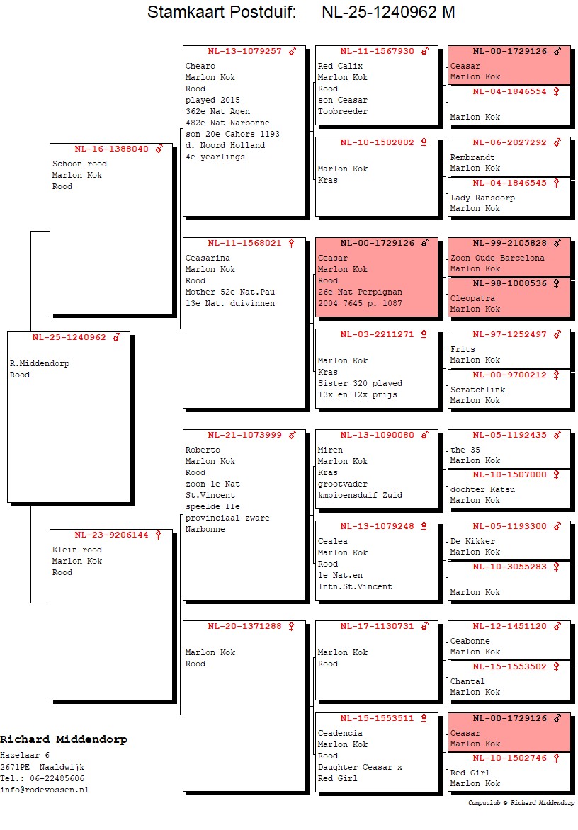 Pedigree Richard Middendorp, "Inbred Ceasar"
