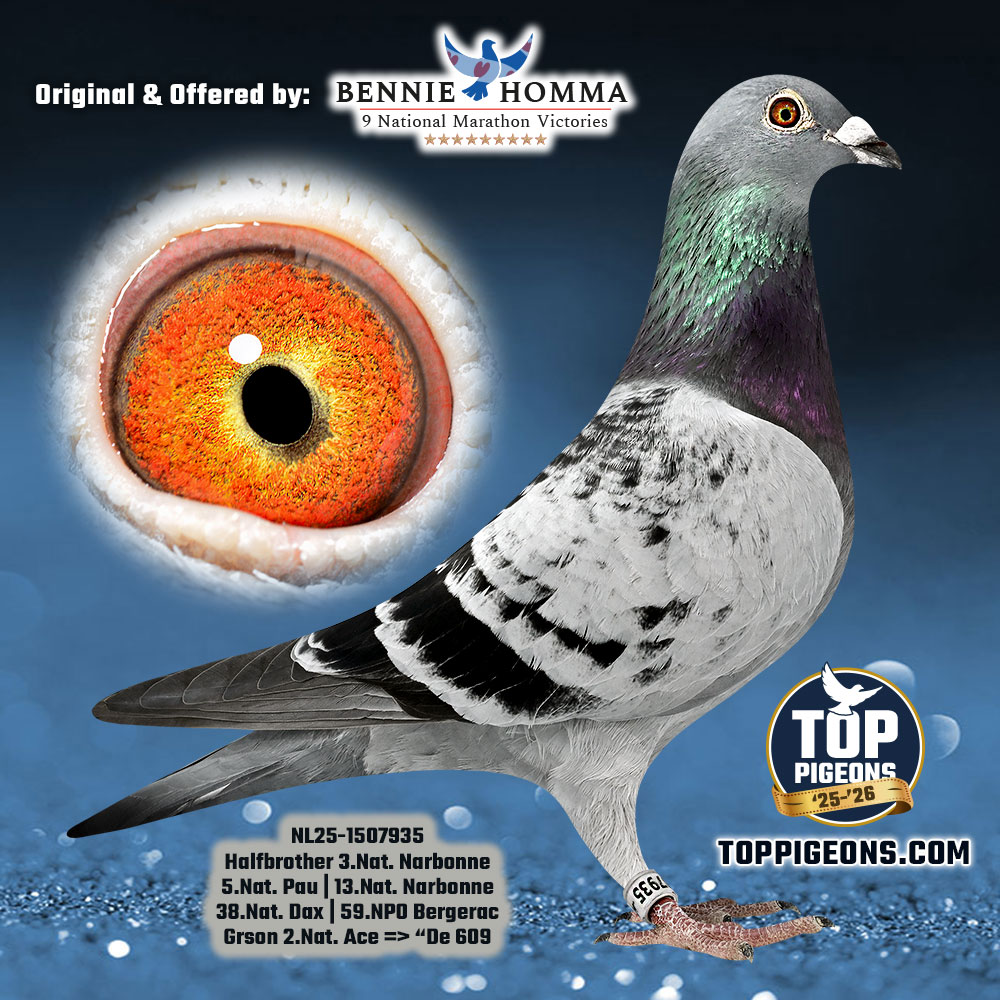 Gr. Sire: NL. 00-4202609 “De 609” October youngster of 2007 has on an old band from 2000 was in 2010 2nd National Ace Pigeon Multi-day long distance.
