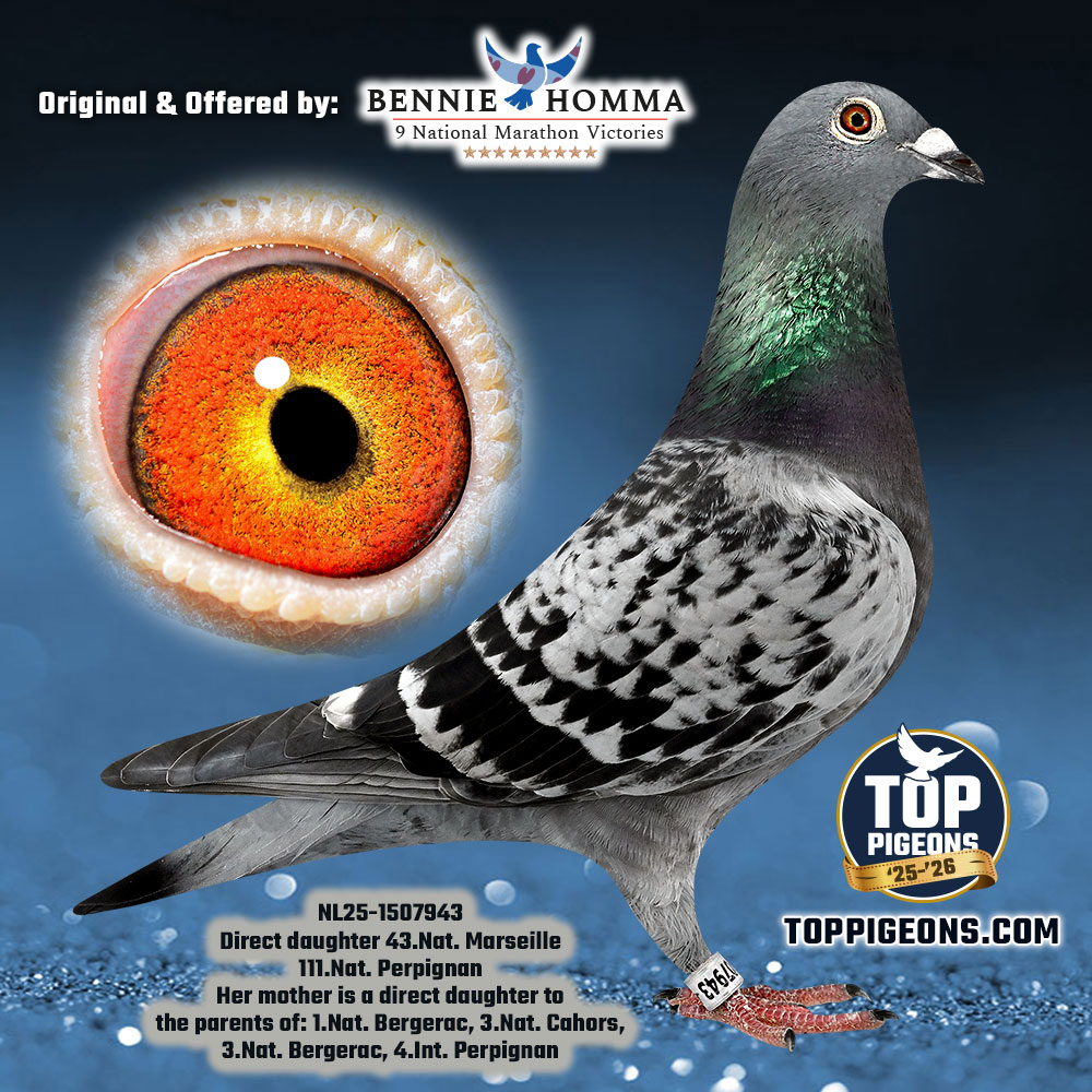 Your current position Home > Auctions > BENNIE HOMMA [2] * EXCL. VEILING * ► 9X NAT. ZEGES ⭐️⭐️⭐️⭐️⭐️⭐️⭐️⭐️⭐️ > 5 - NL25-1507943 - Bennie Homma, "Daughter 43rd Nat. Marseille"