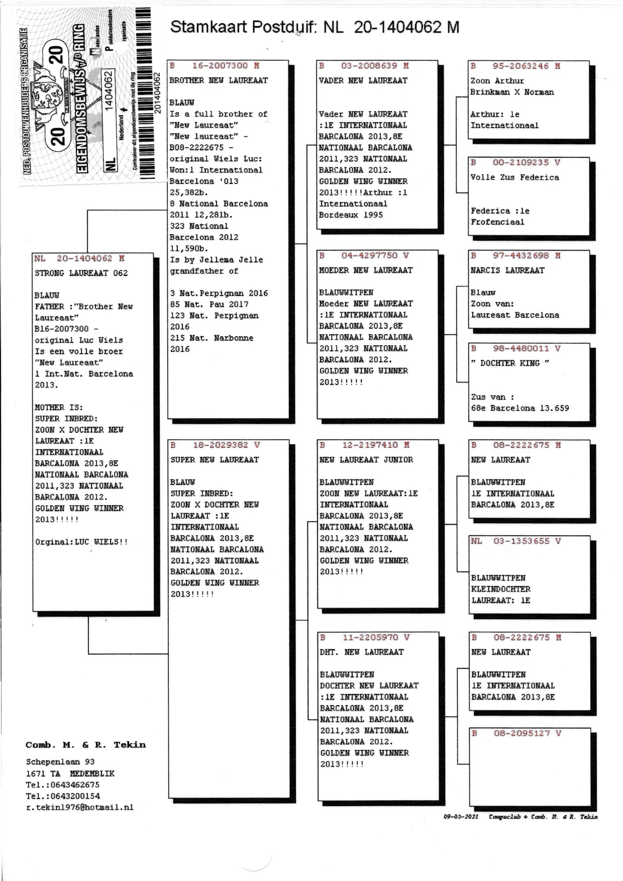 Father is a full brother to New Laureaat 1.Int. Barcelona 25.382 p.